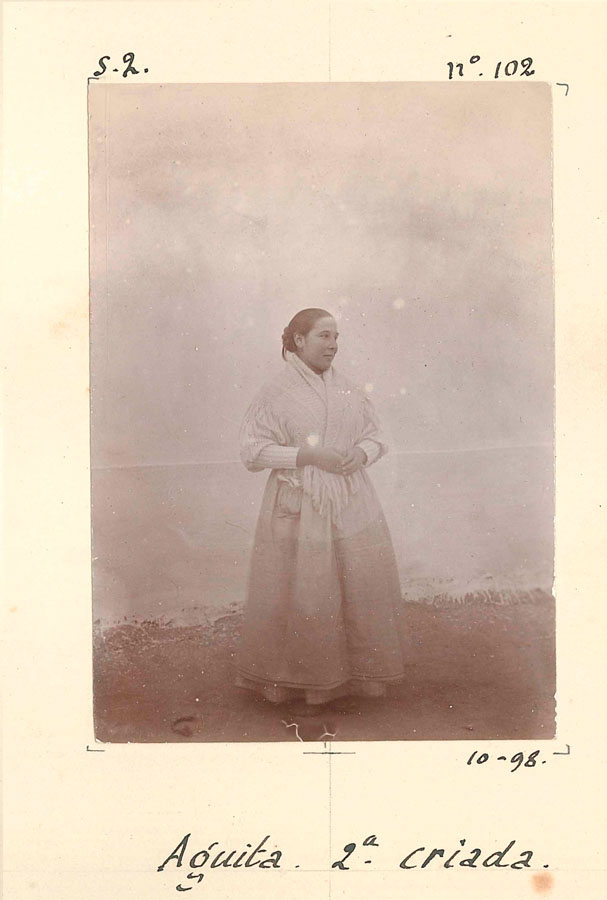 La dimensión doméstica de la estancia de Busquet en Cástaras se hace visible en dos imágenes excepcionales del álbum: Rosa, 1.ª criada y Aguita, 2.ª criada. Retratadas en solitario, revelan un grado de integración cotidiana que desmiente cualquier idea de viaje fugaz.