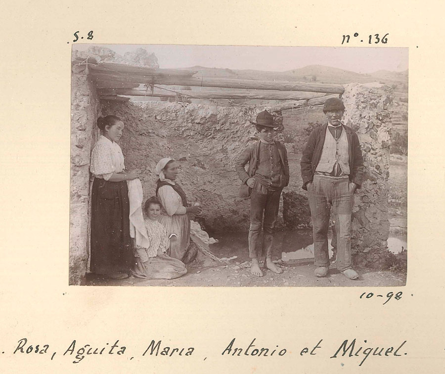 La comunidad local se manifiesta en figuras singulares, como el hijo del alcalde, un chiquillo que juega seguramente en la puerta de su casa. Especial relevancia tienen las imágenes de servidumbre y acompañantes: Rosa, Aguita —probable derivado de Aguedita y, en última instancia, de Águeda, nombre frecuente en Cástaras—, María, Antonio y Miguel que asistían a los expedicionarios en las labores cotidianas. Lejos de quedar relegados a un segundo plano, aparecen nombrados y fotografiados en plena actividad, formando parte activa del dispositivo técnico y humano.