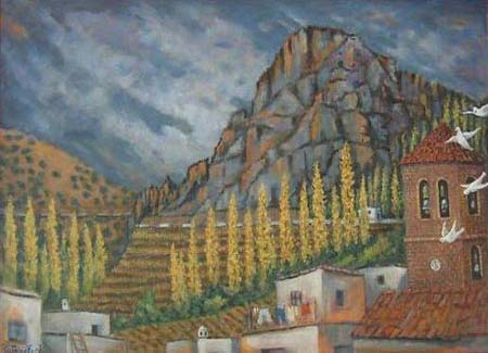 No puede faltar en esta recopilación de obras inspiradas en Cástaras una representación de la obra de José Ortuño (1943-1999), el pintor