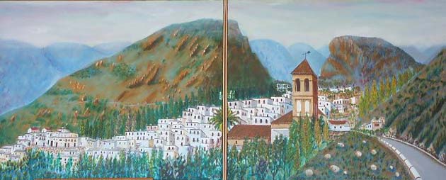 Exibimos una pequeña muestra de la pintura de José Ortuño proporcionada por su familia: tres paisajes alpujarreños pintados en la época en que el prolífico artista frecuentaba nuestro pueblo, que podrían estar inspirados en cualquier rincón del paisaje castareño.