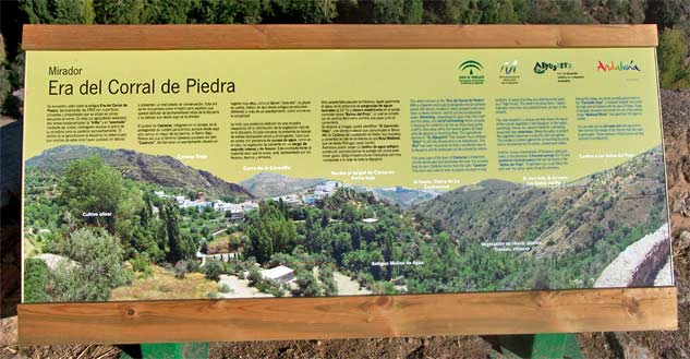 Cartel informativo del mirador de la Era del Corral de Piedra, donde se relaciona Cástaras con el significado casas altas, siguiendo el criterio publicado en esta página en diciembre de 2006.