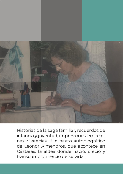 No podía Leonor dejar de lado los recuerdos de su tierra natal y de su familia, las historias aprendidas a la luz del candil junto a la lumbre o al calor del brasero bajo la mesa camilla. Así surgió Mi pueblo y mis raíces, «una historia real» escrita al parecer en 1983 a la que se le ha otorgado escasa difusión. Con un estilo peculiar y único, Leonor junta en una simpática y desconcertante mezcolanza, alegres momentos de infancia y juventud, penosos recuerdos de la Guerra Civil y la posguerra, historias y fantasías de la saga familiar, costumbres y tradiciones castareñas, y retratos de algunos personajes, como si se tratara de un potaje de puñaicos cocido en Cástaras, convertida en colosal olla de remembranzas.