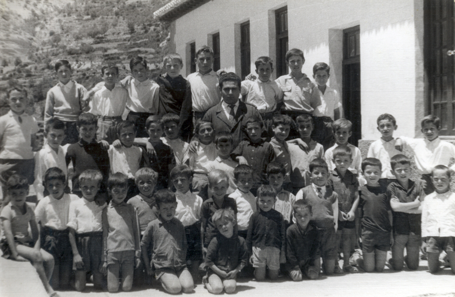 Niños de la escuela de Cástaras con su maestro, don José Monserrat Ferrer, hacia 1965.